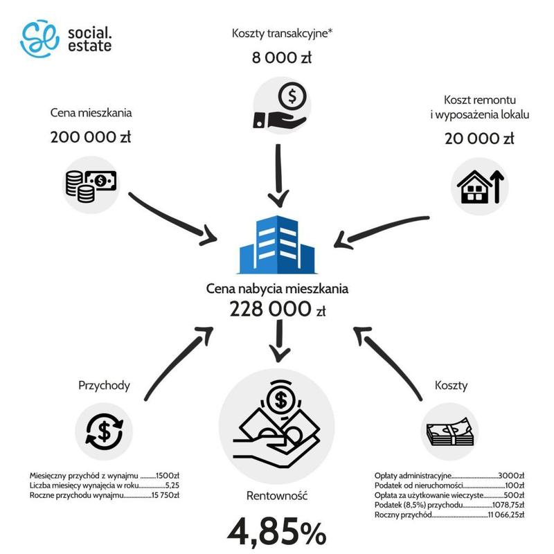 • Podatki – obciążenia, które mogą wpłynąć na rentowność inwestycji.