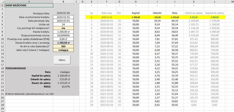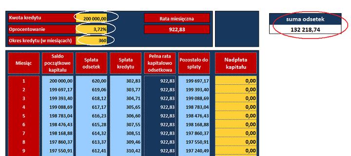 - Całkowity koszt kredytu